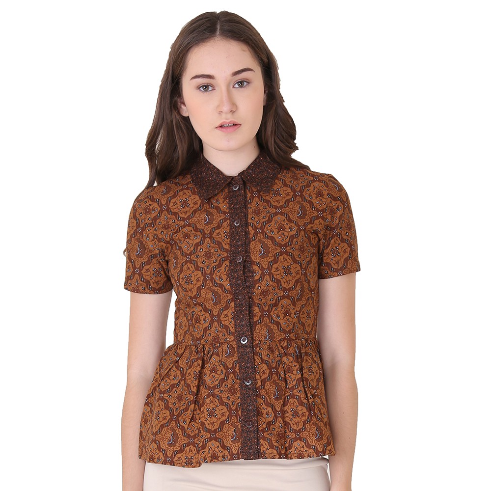 Blouse Atasan Batik Wanita Vero Brown Rianty Batik . Sumber Gambar : shopee.co.id